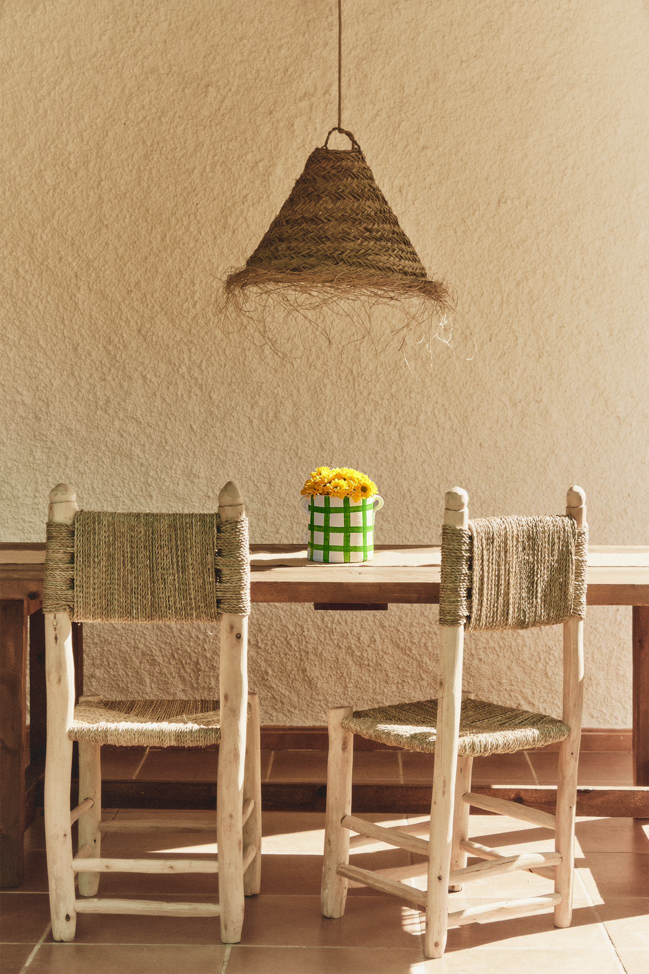 Made from palm leaves, this lampshade adds the perfect Mediterranean and traditional touch to any room. Its two sizes allow for placement in a variety of spaces.